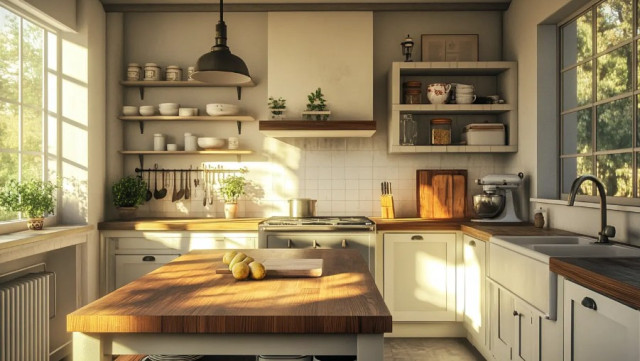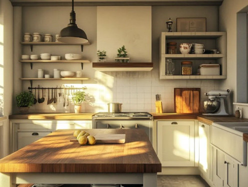 - Open shelving displays colorful produce, reminding you to use fresh ingredients.