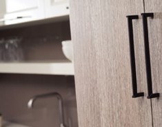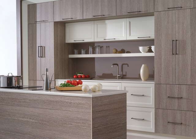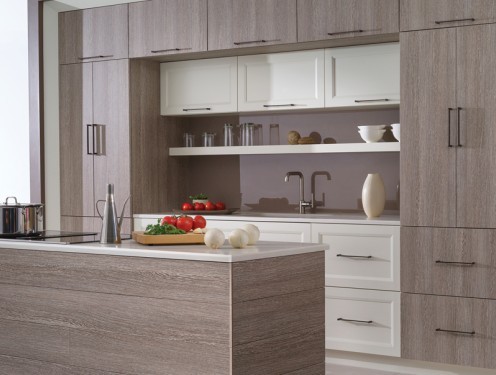 For a sleek, modern cabinetry look, consider Dura Supreme’s “Alpine” door style with beautiful and durable high-pressure laminates in 10 stunning colors and textures.