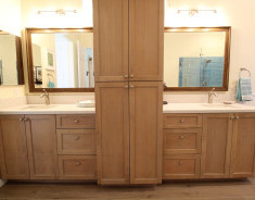 The entire design was meticulously crafted by Susan Parker, one of Kitchen Mart’s talented designers, ensuring the result was both stylish and functional. Whether the goal was to create an expansive walk-in shower, update the aging vanity and countertops, or modernize the entire look, Kitchen Mart delivered on all fronts, offering an ideal balance of comfort, convenience, and elegance.